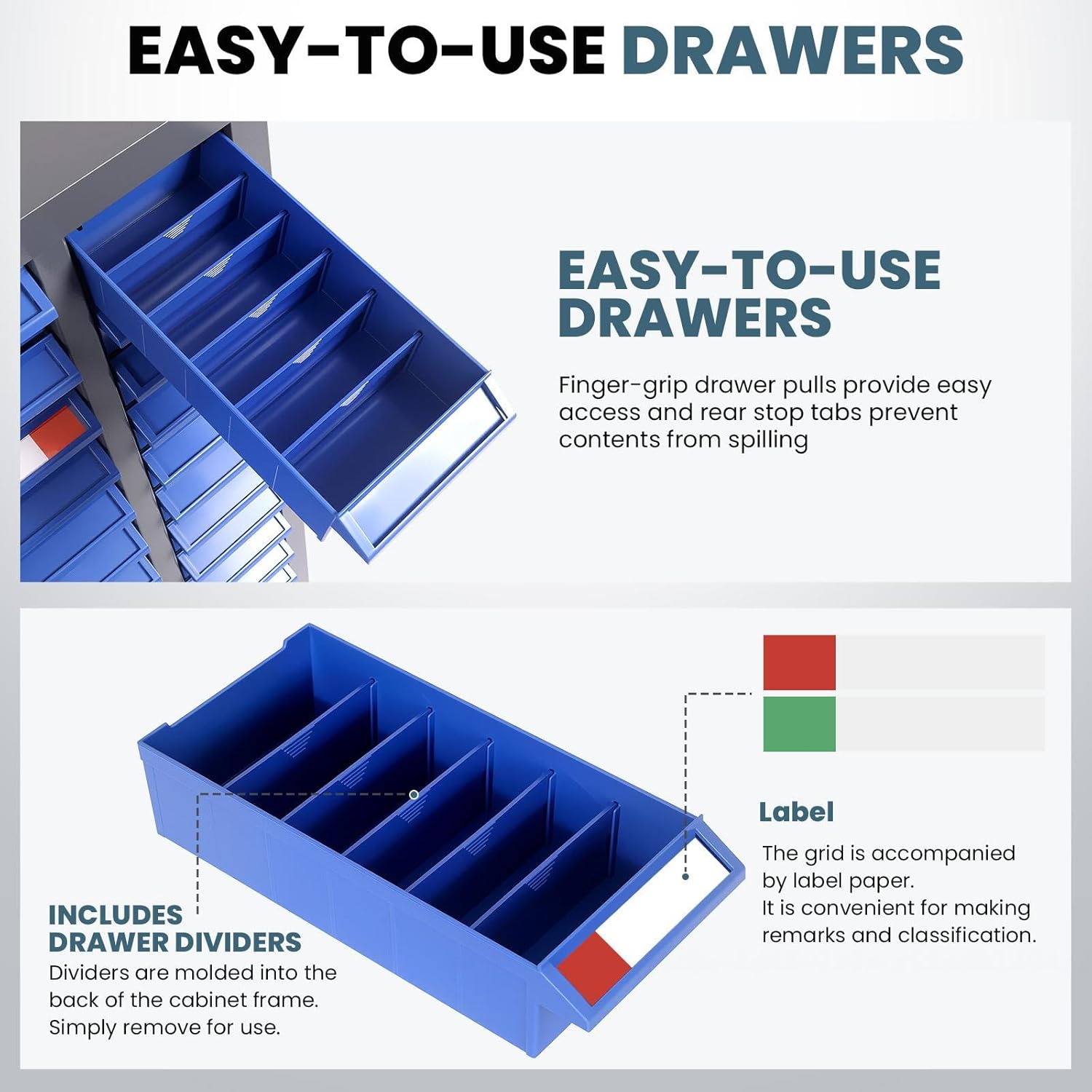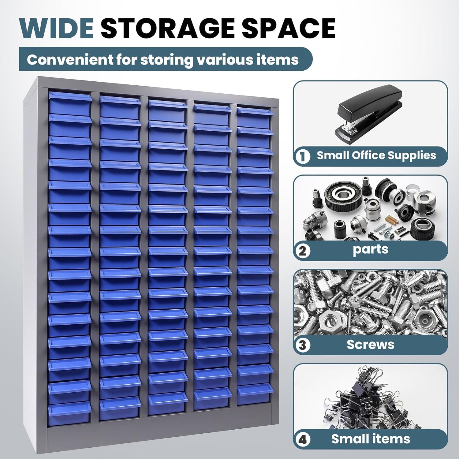 Are you still bothered by the clutter of tools, parts and small items in your warehouse, office or workshop? Our 100-drawers parts cabinet is specially designed for garages, workshops, offices and homes. With its 100-slot drawer design, it provides a multi-functional storage solution for any space. Whether it's screws, nuts, small items or toys, this parts cabinet can make your space tidy.