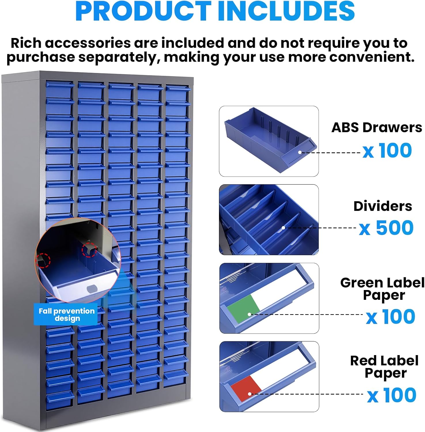 100 Drawers Bolt and Nut Tool Storage Cabinet with Shelves & Labels - Part Cabinet Bolt Bin Cabinets, Alloy Steel Tool Hardware Storage for Hardware Organization Small Items and Parts (100 Drawers)