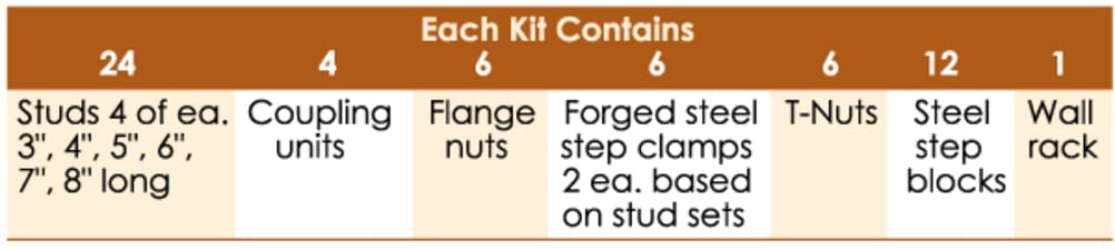 Clamping kits are an economical clamping set with a wide assortment of step blocks and step clamps.
