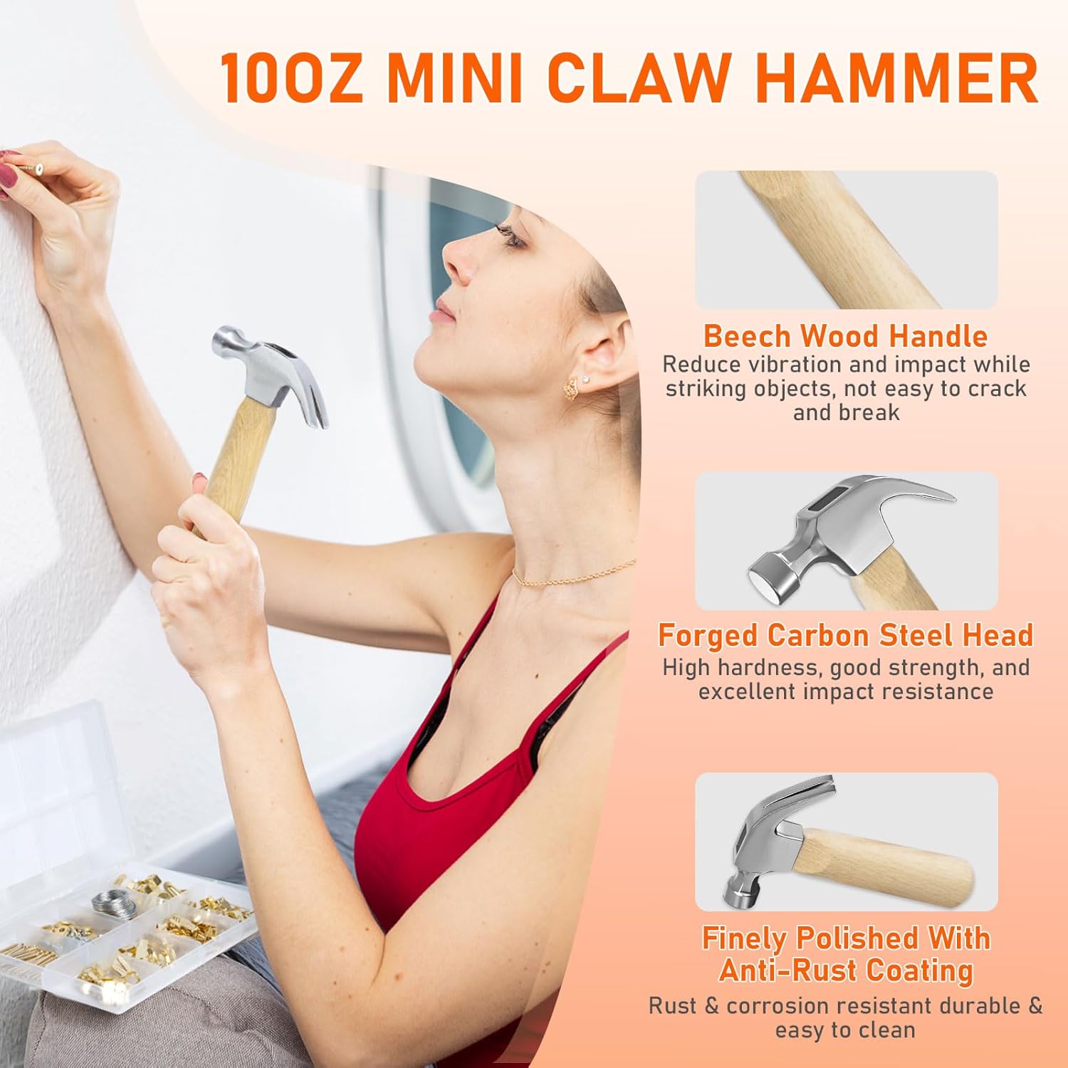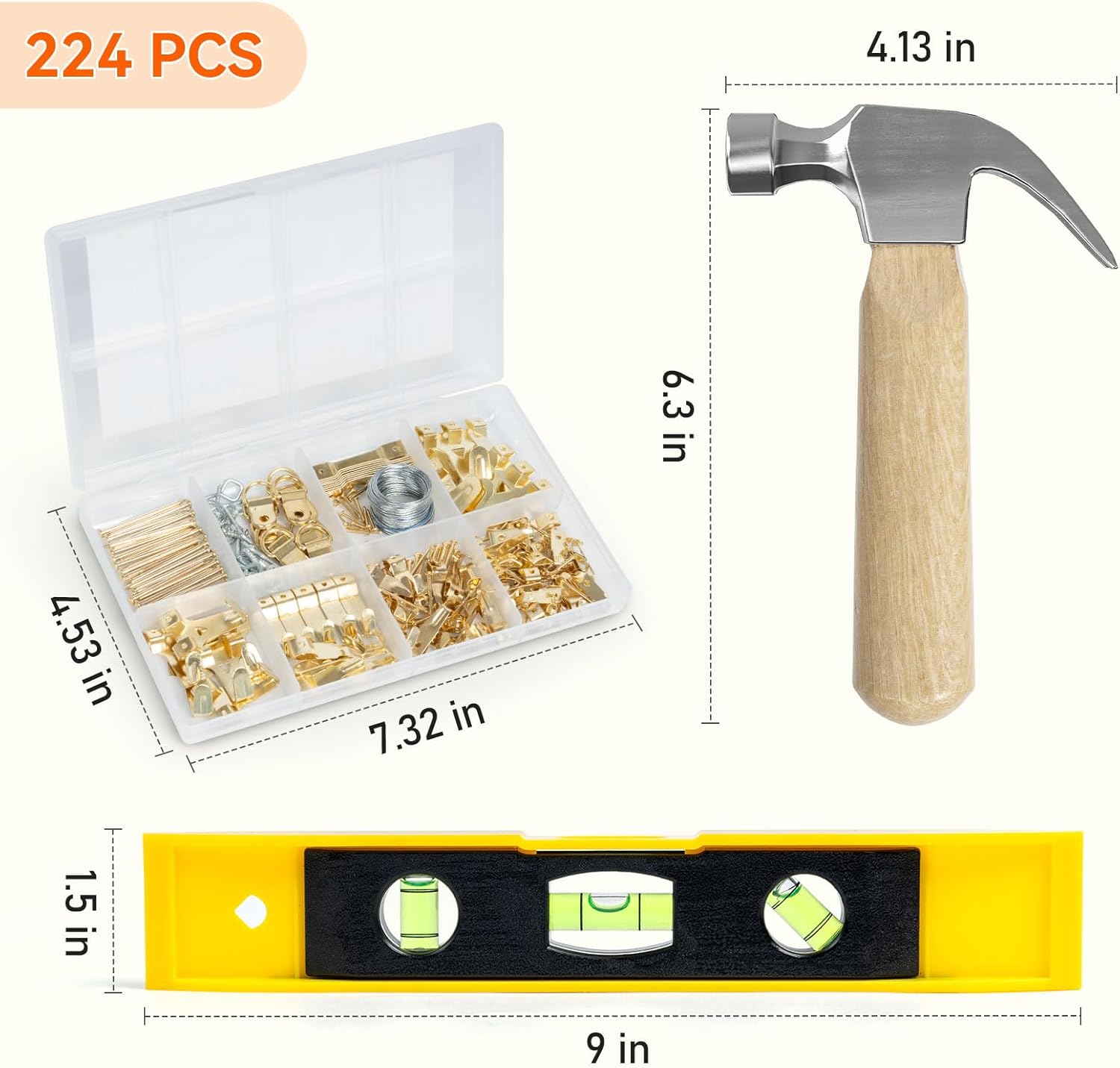 Picture Hanging Kit, 315pcs Hanging Hardware with Hooks, Wire, Nails, D Ring, Wall Hanging Kit with Hangers, Magnetic Level and Small Pink Claw Hammer, nails for hanging pictures for Home Decor