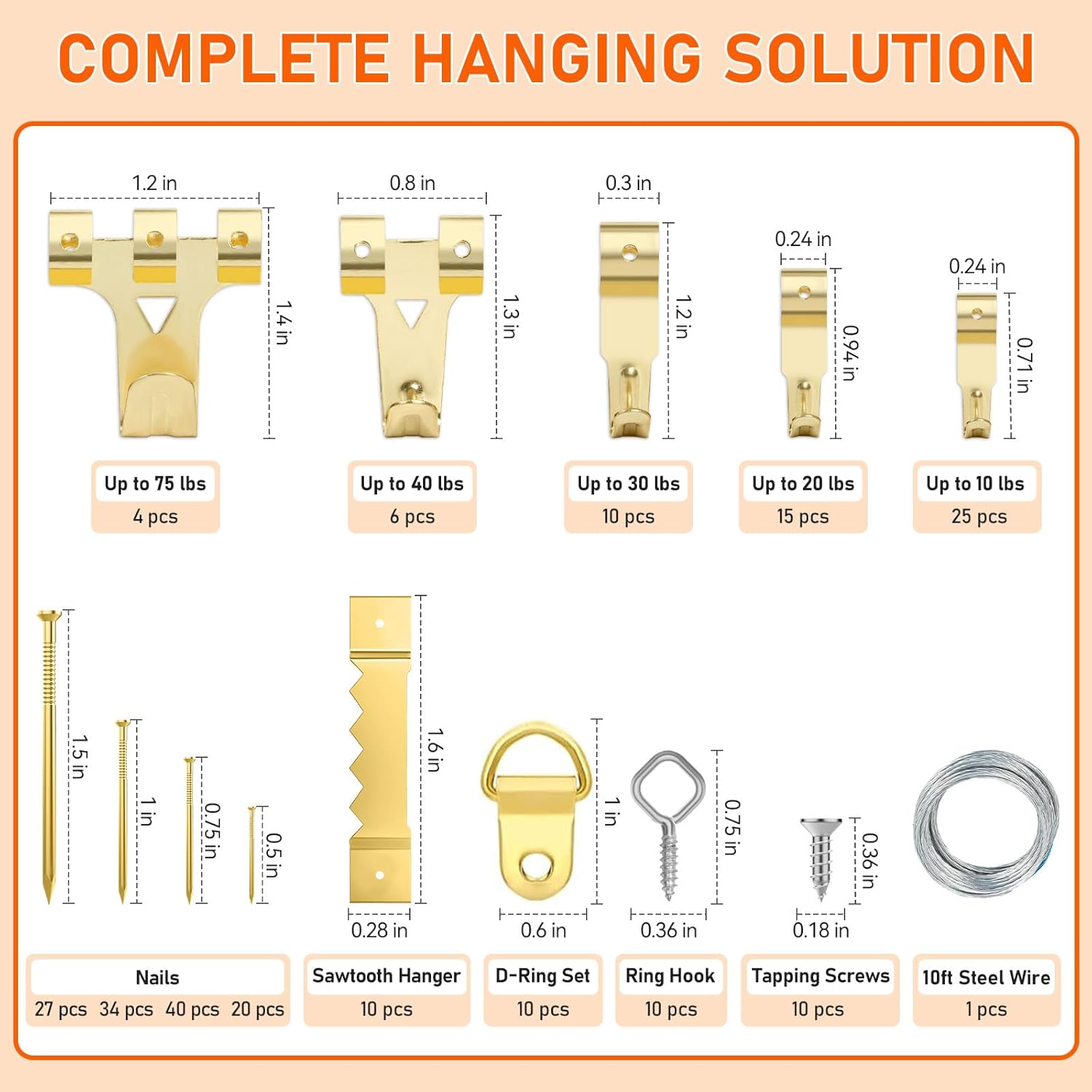 Picture Hangers: Up to 20lb Hooks*15 pcs, Up to 30lb Hooks*10 pcs, Up to 40lb Hooks*5 pcs
