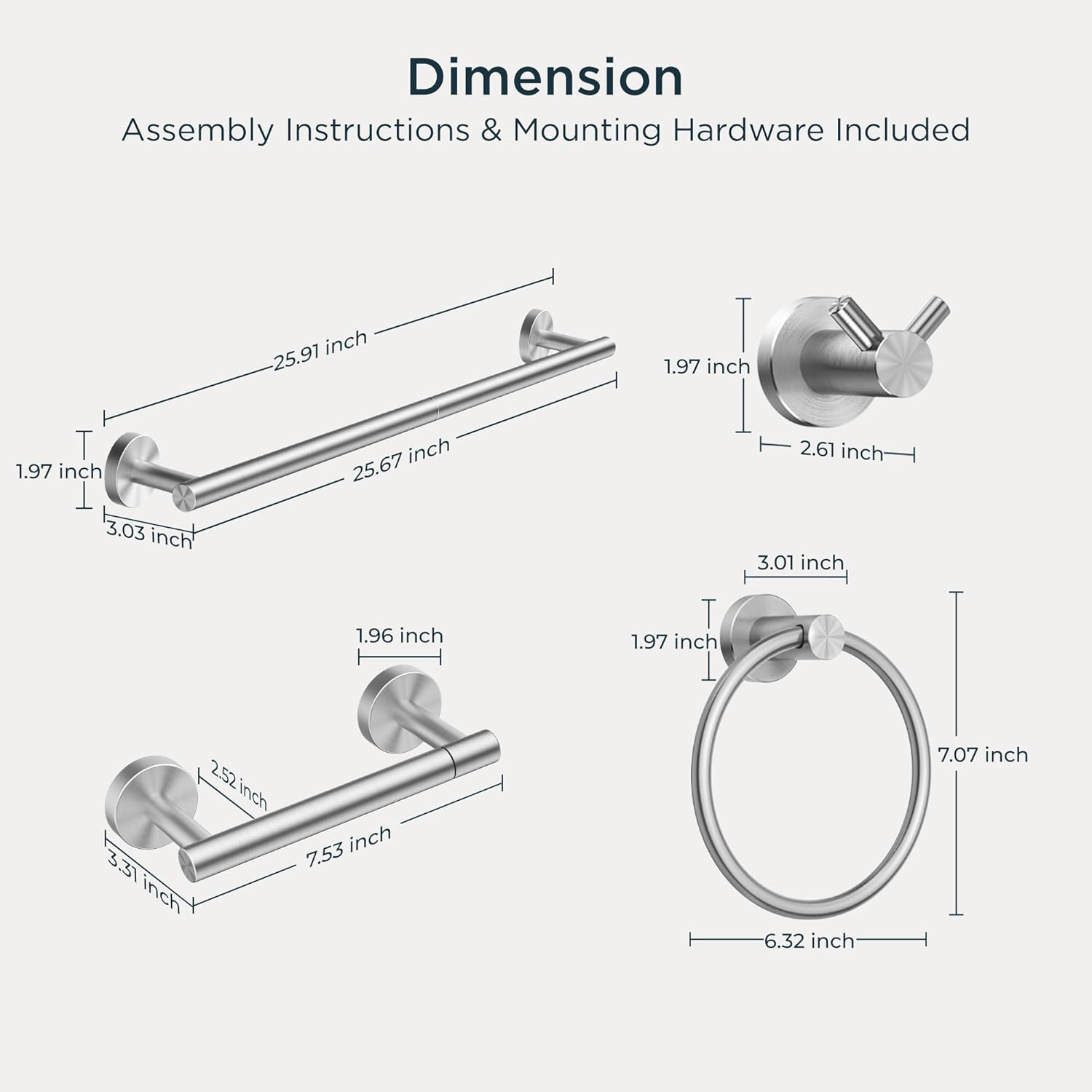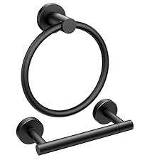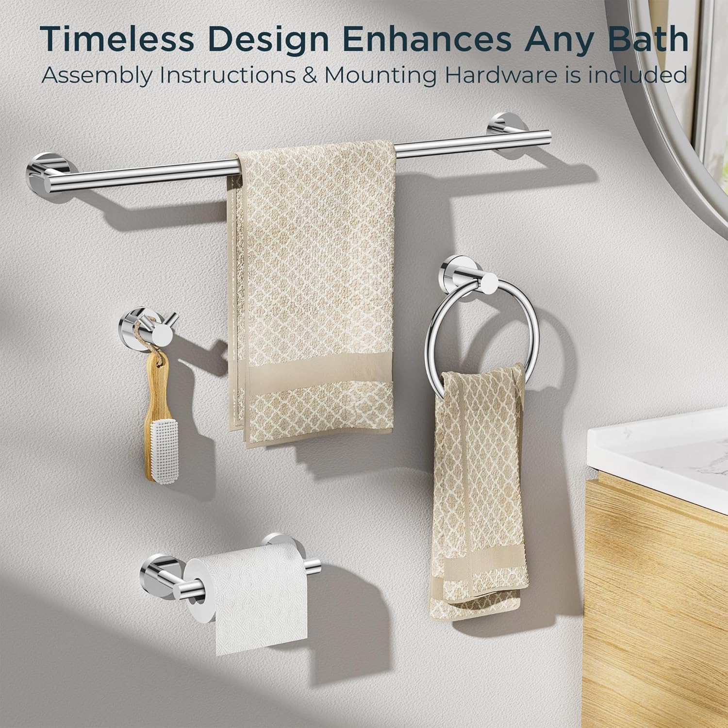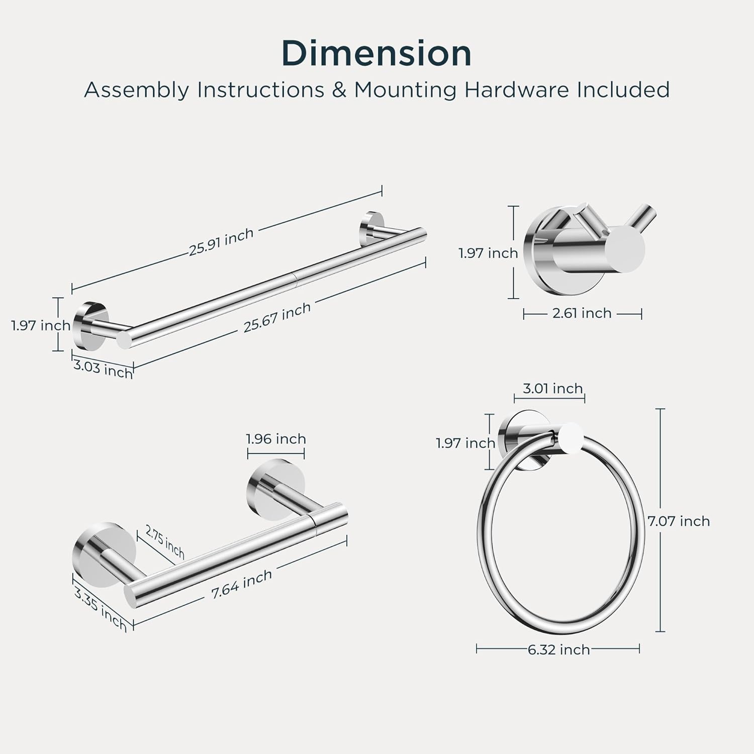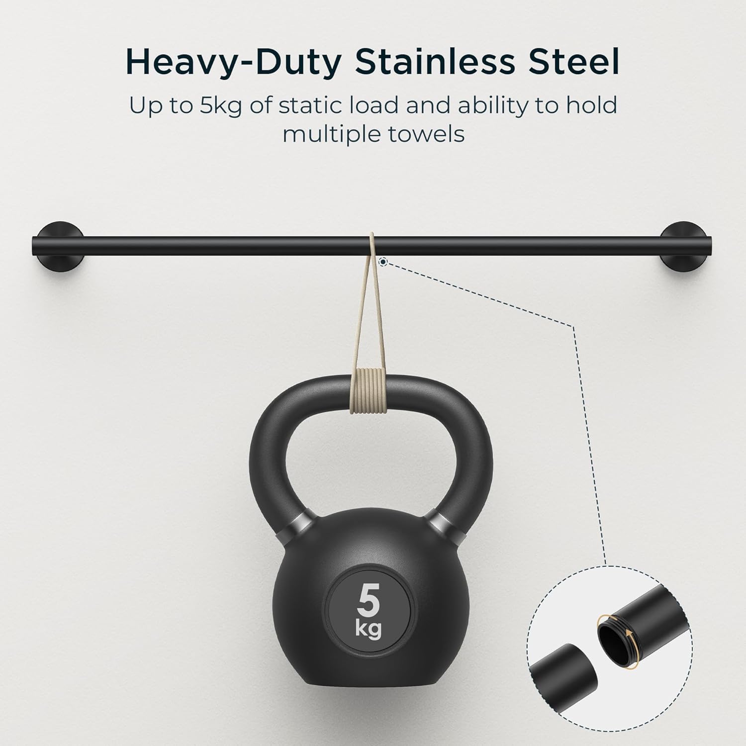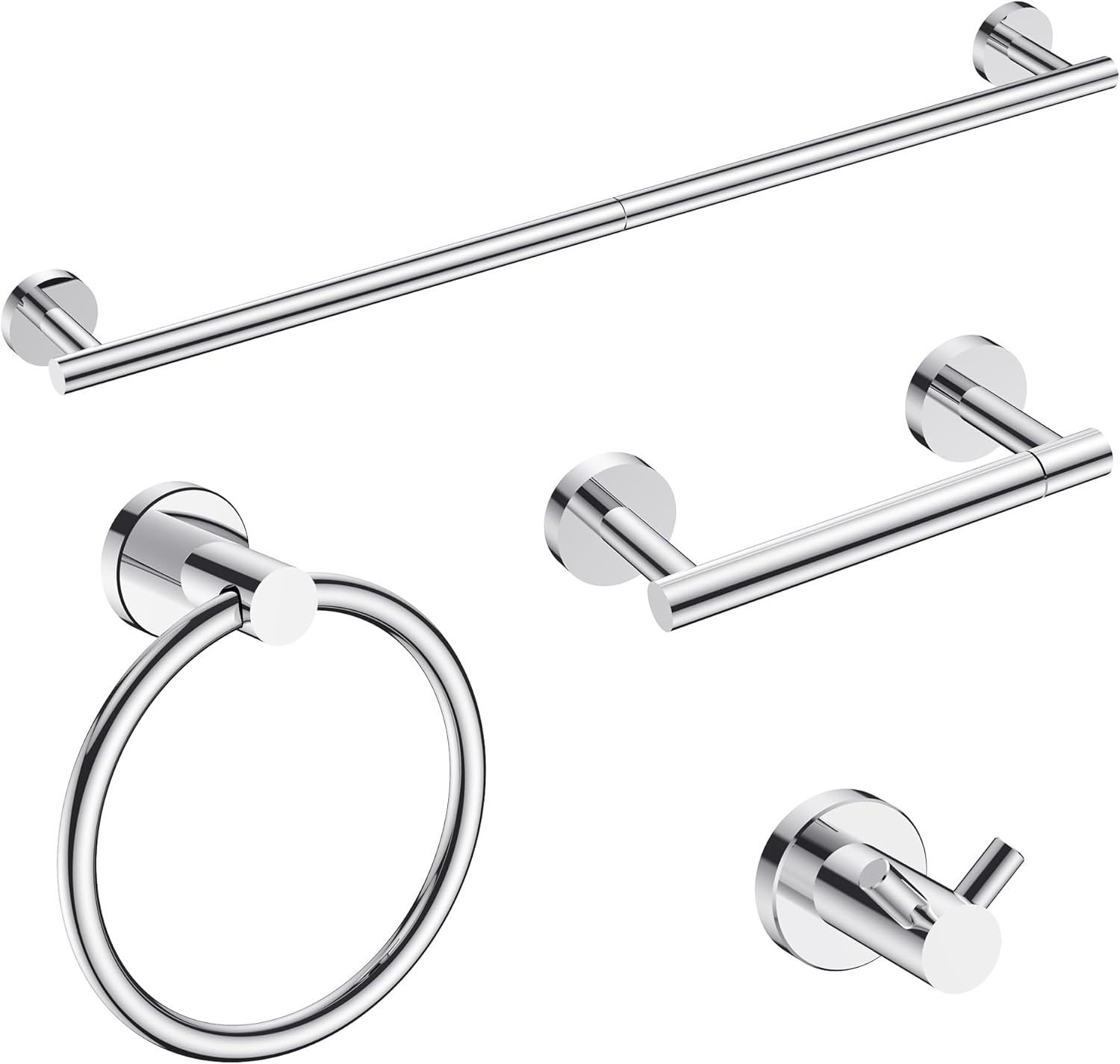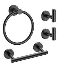 FORIOUS Bathroom Hardware Accessories Set, SUS304 Stainless Steel 24 Inch Towel Bar Set, Modern Towel Racks Holder for Bathroom Wall Mounted, 4 Pieces, Matte Black