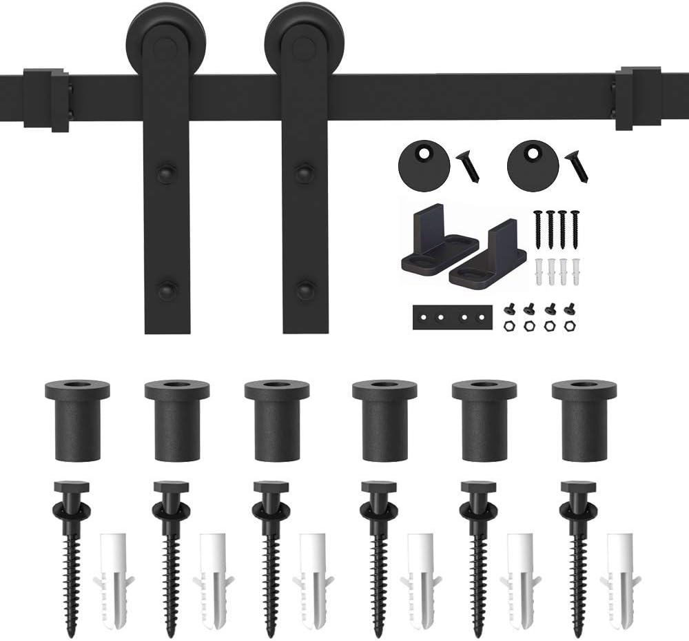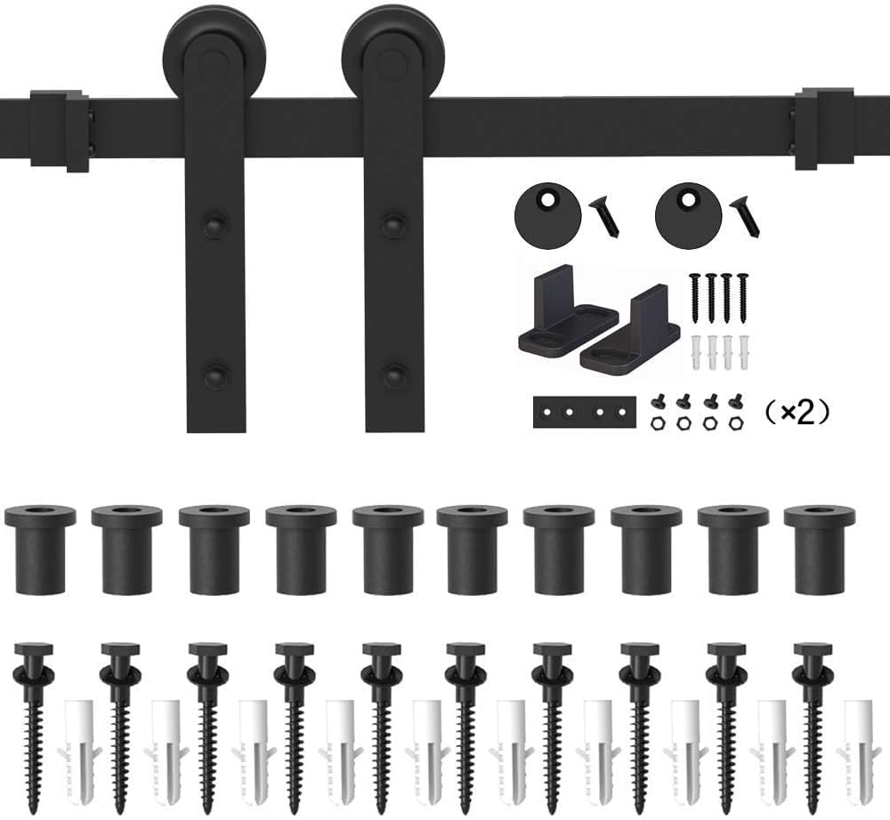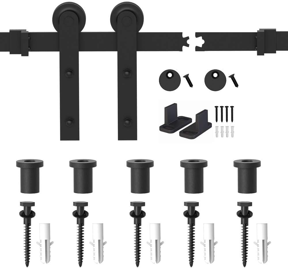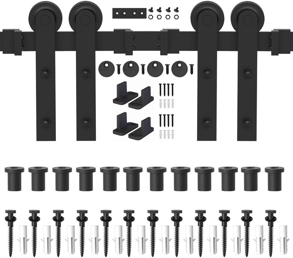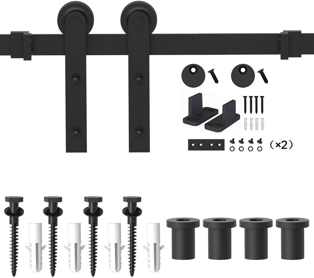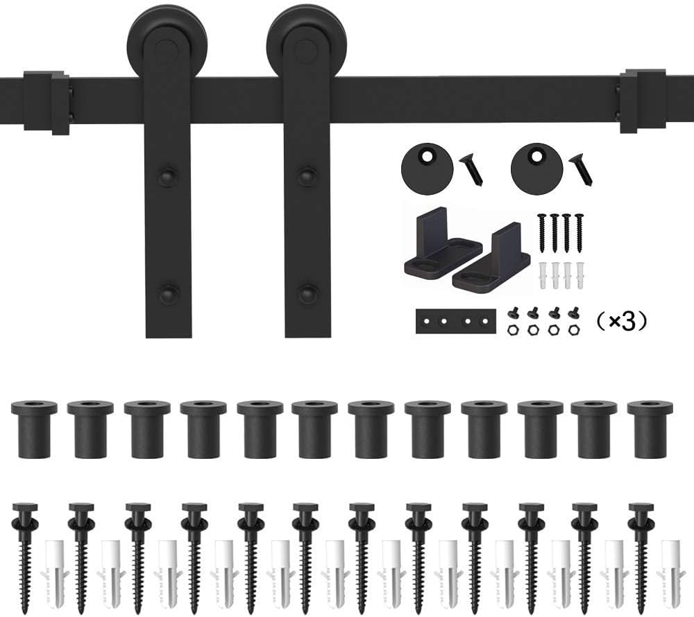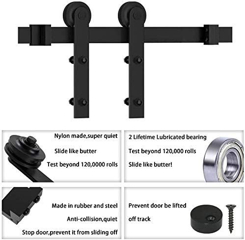 WINSOON 15FT Barn Door Hardware Kit: Single Sliding Door Hardware - Heavy Duty Black Barn Door Track Kit - Carbon Steel Sliding Barn Door Rail - I-Shape Easy to Install for 95" Closet Panel(No Door)
