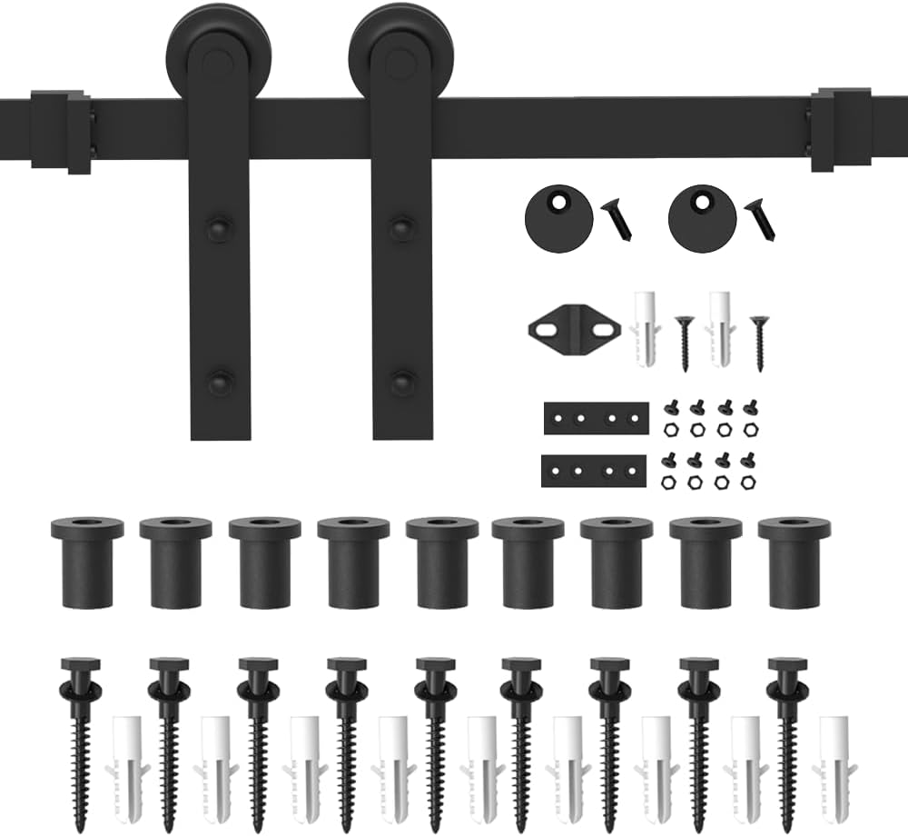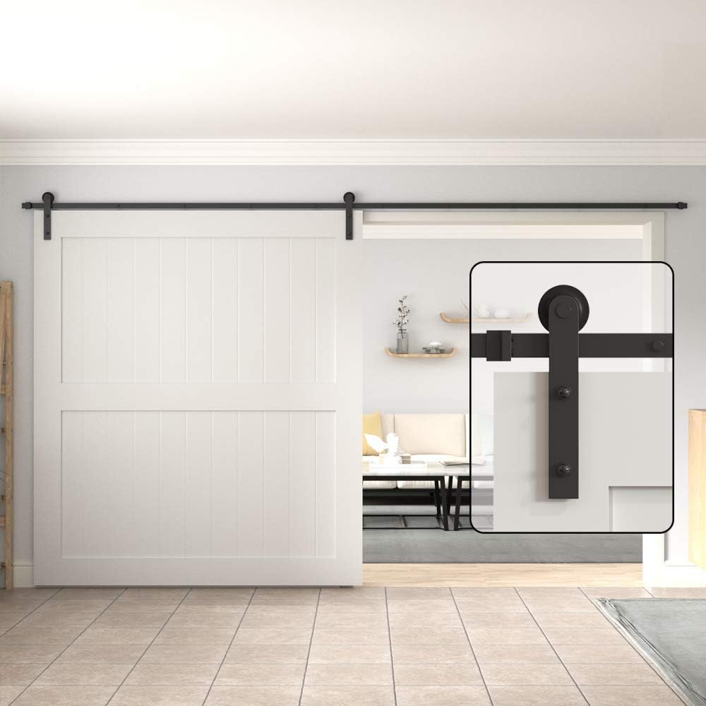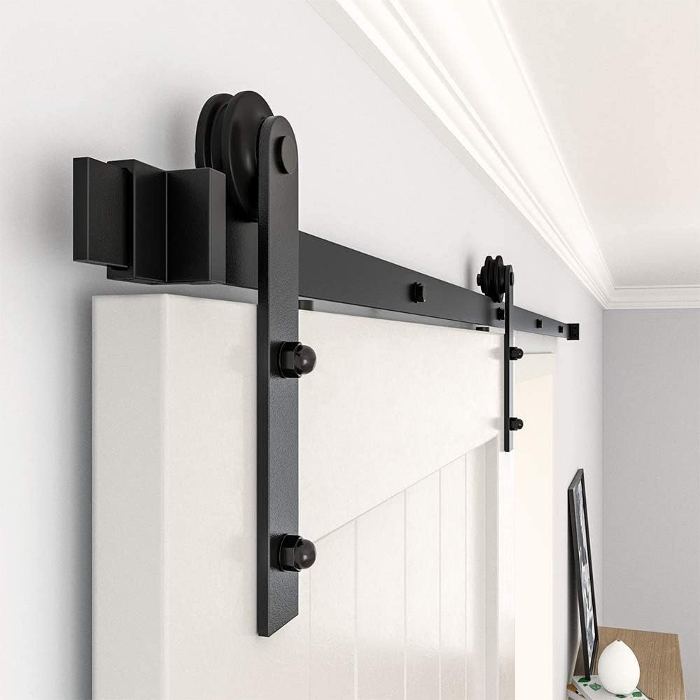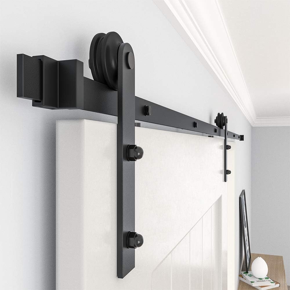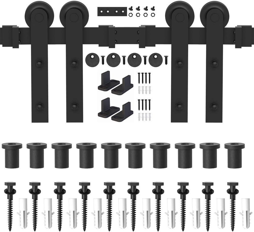 WINSOON 15FT Barn Door Hardware Kit: Single Sliding Door Hardware - Heavy Duty Black Barn Door Track Kit - Carbon Steel Sliding Barn Door Rail - I-Shape Easy to Install for 95" Closet Panel(No Door)