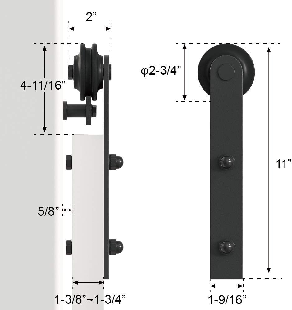 Work for non-grooved and grooved doors; Fully adjustable, suitable for all thickness sliding barn doors.