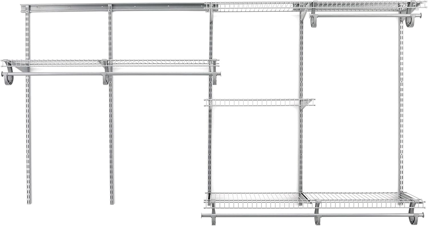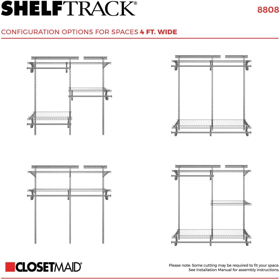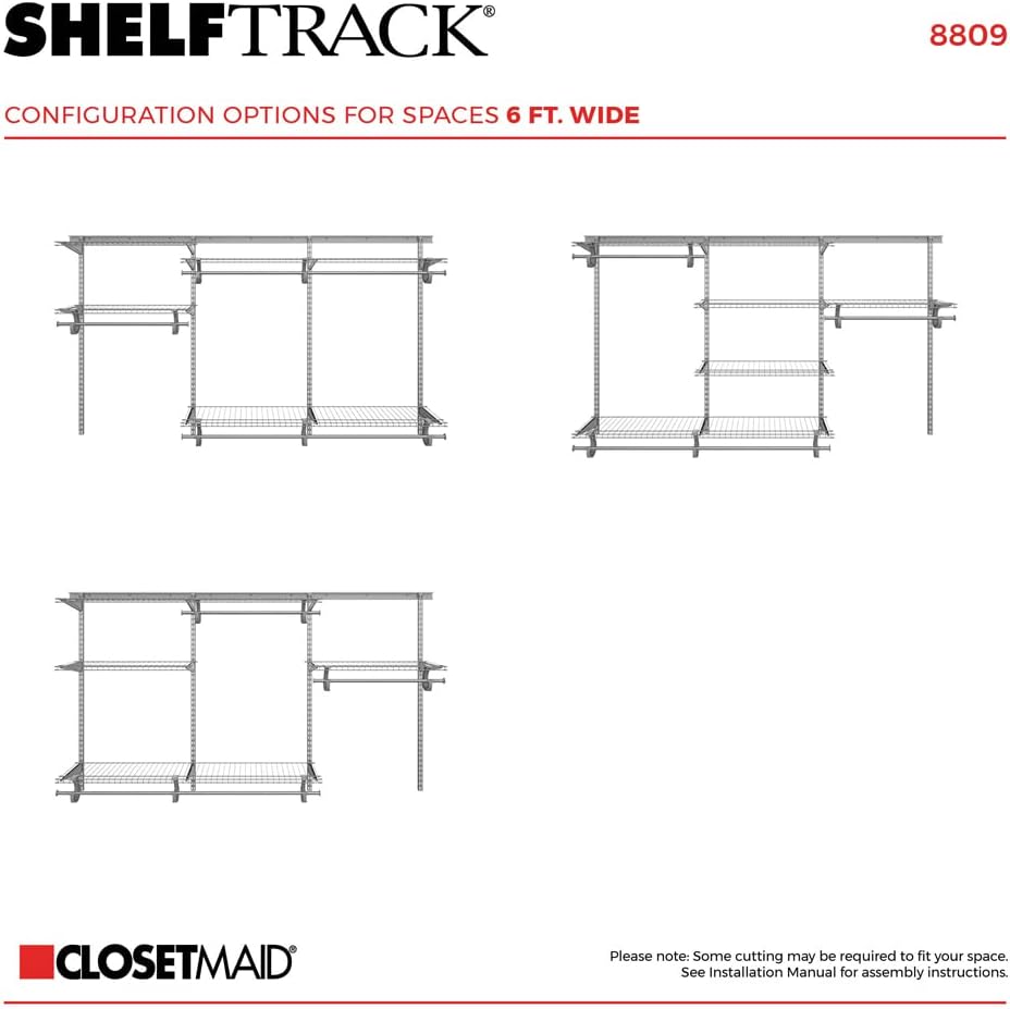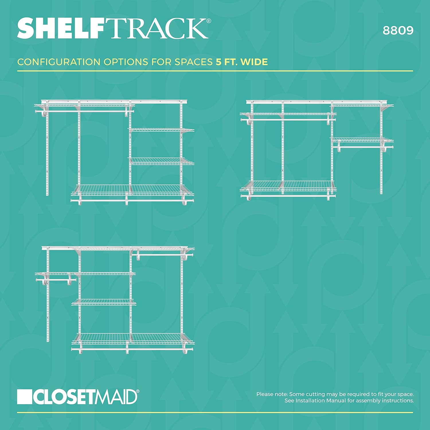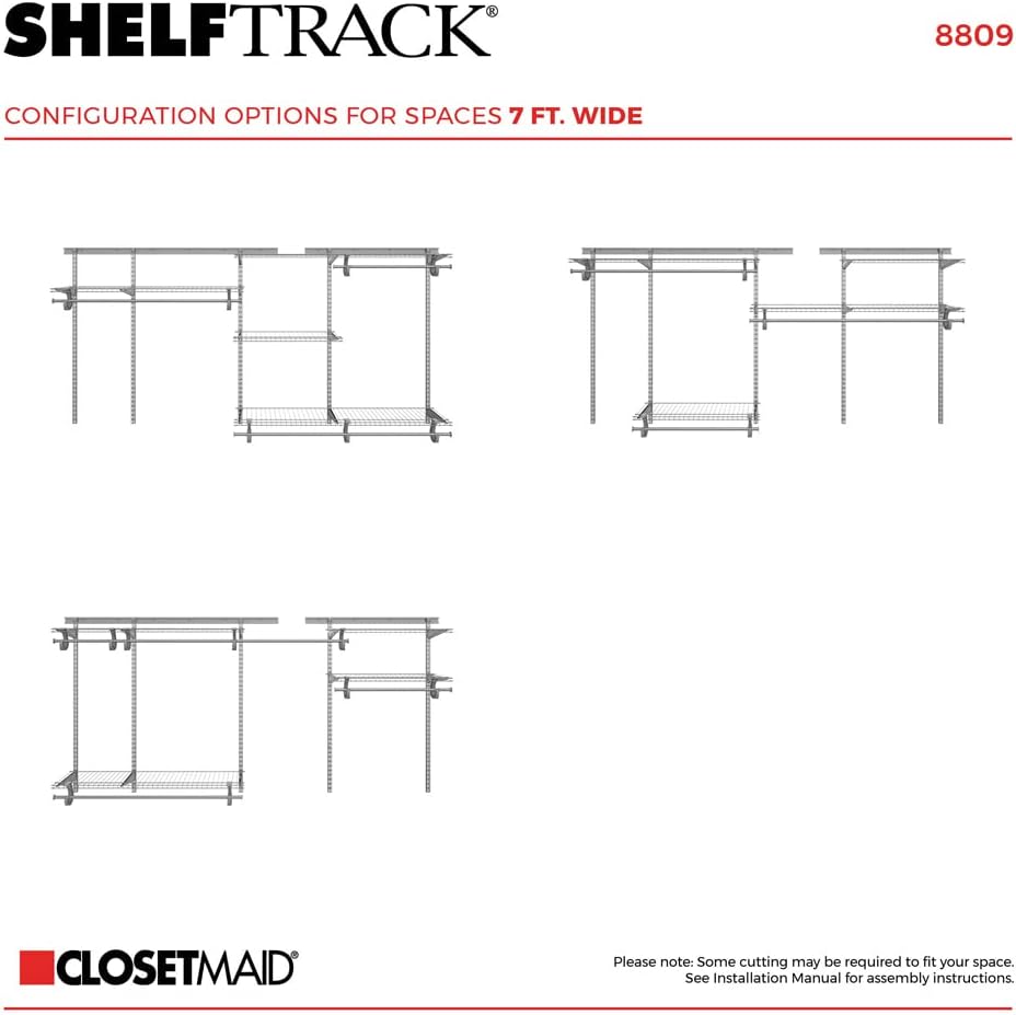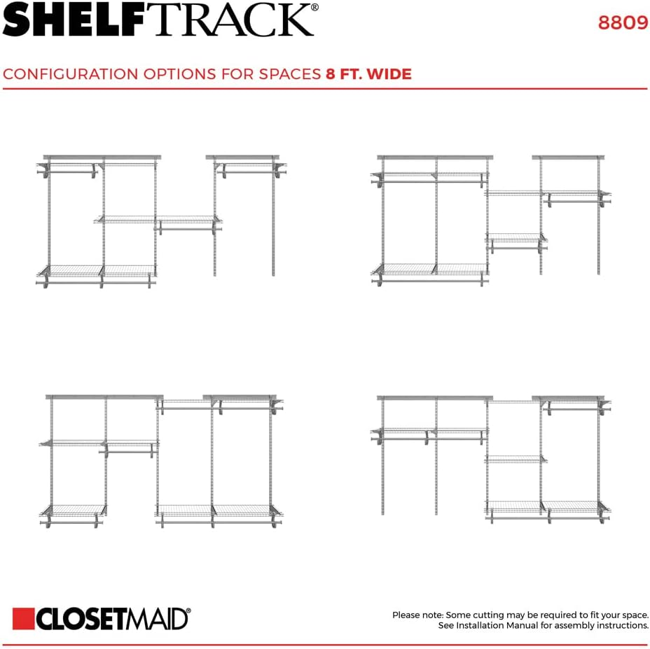 This versatile ventilated wire shelf organizer features several configuration options depending on your closet size. For spaces less than 5 ft. wide, some shelf or hang track cutting may be required.