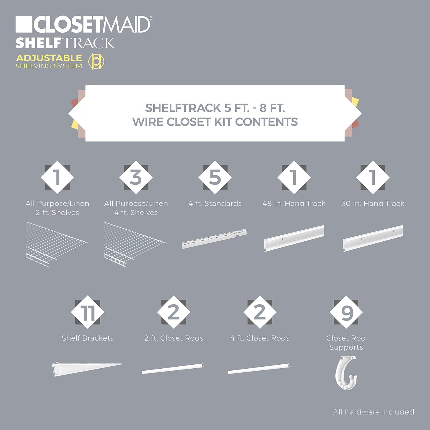 The ClosetMaid ShelfTrack Closet Organizer's adjustable mounting system makes it easy to configure your design or rearrange shelves as needs change.