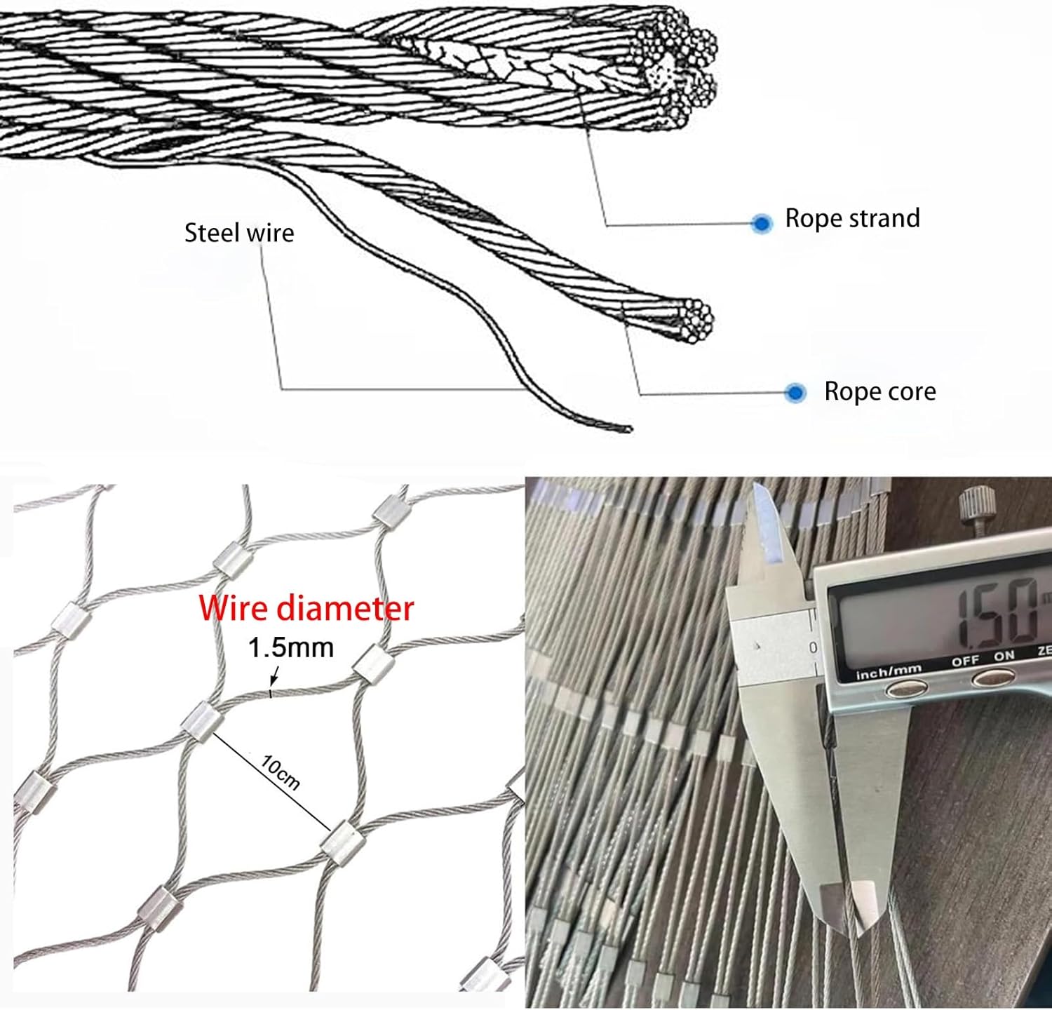Flexible customization, free choice: The cable net provides 1.5-2.5mm multi-speed wire diameter, supports 0.8-3 meters height and 1-30 meters length customization. Whether it is large-scale patio paving or partial balcony protection, it can be matched on demand to meet diverse needs.