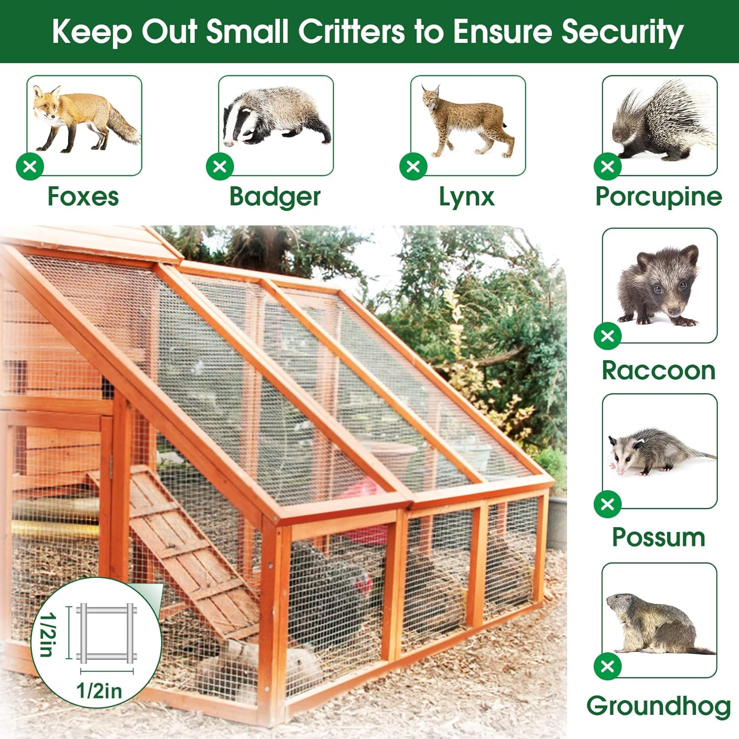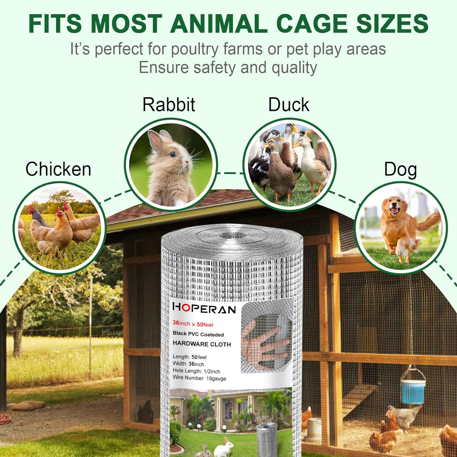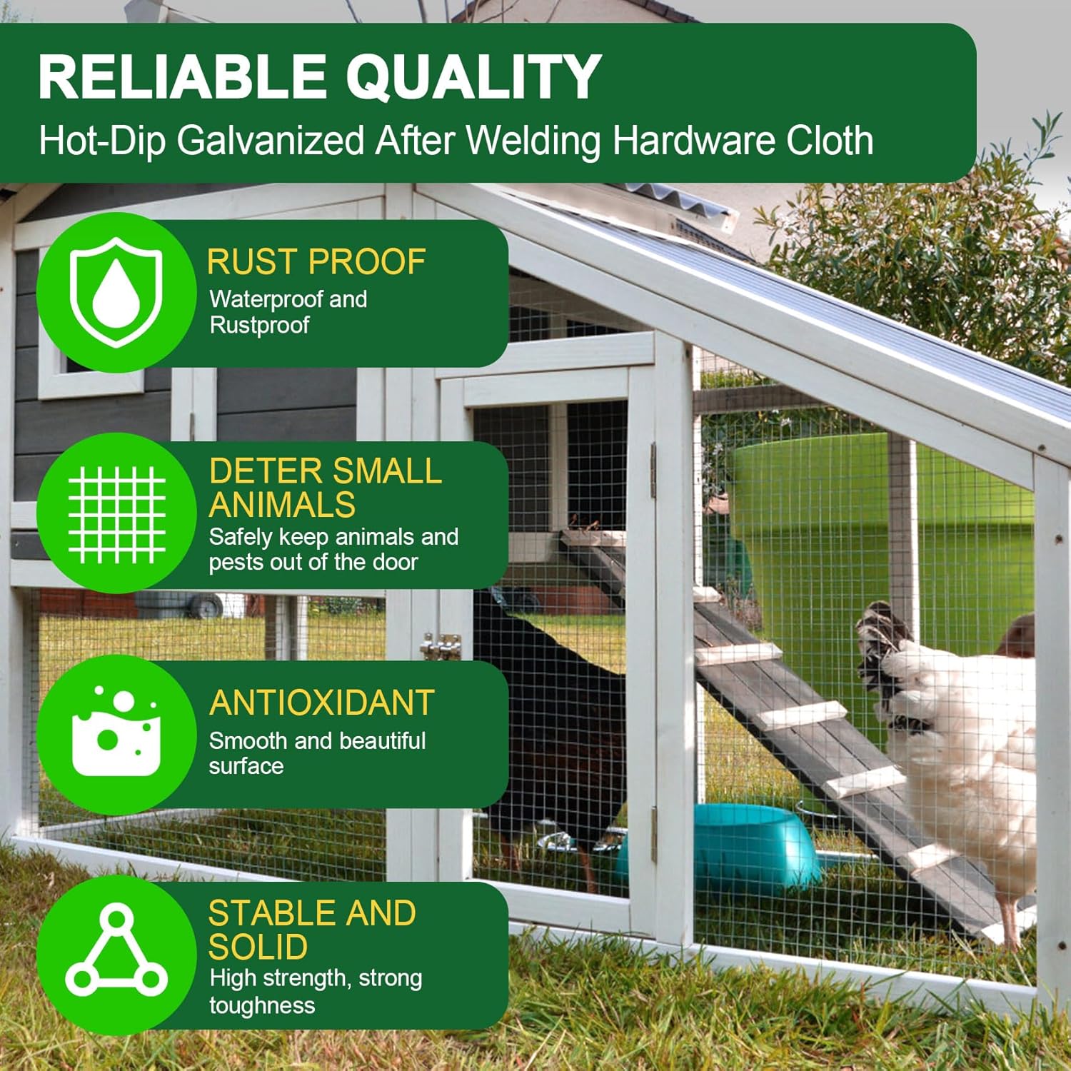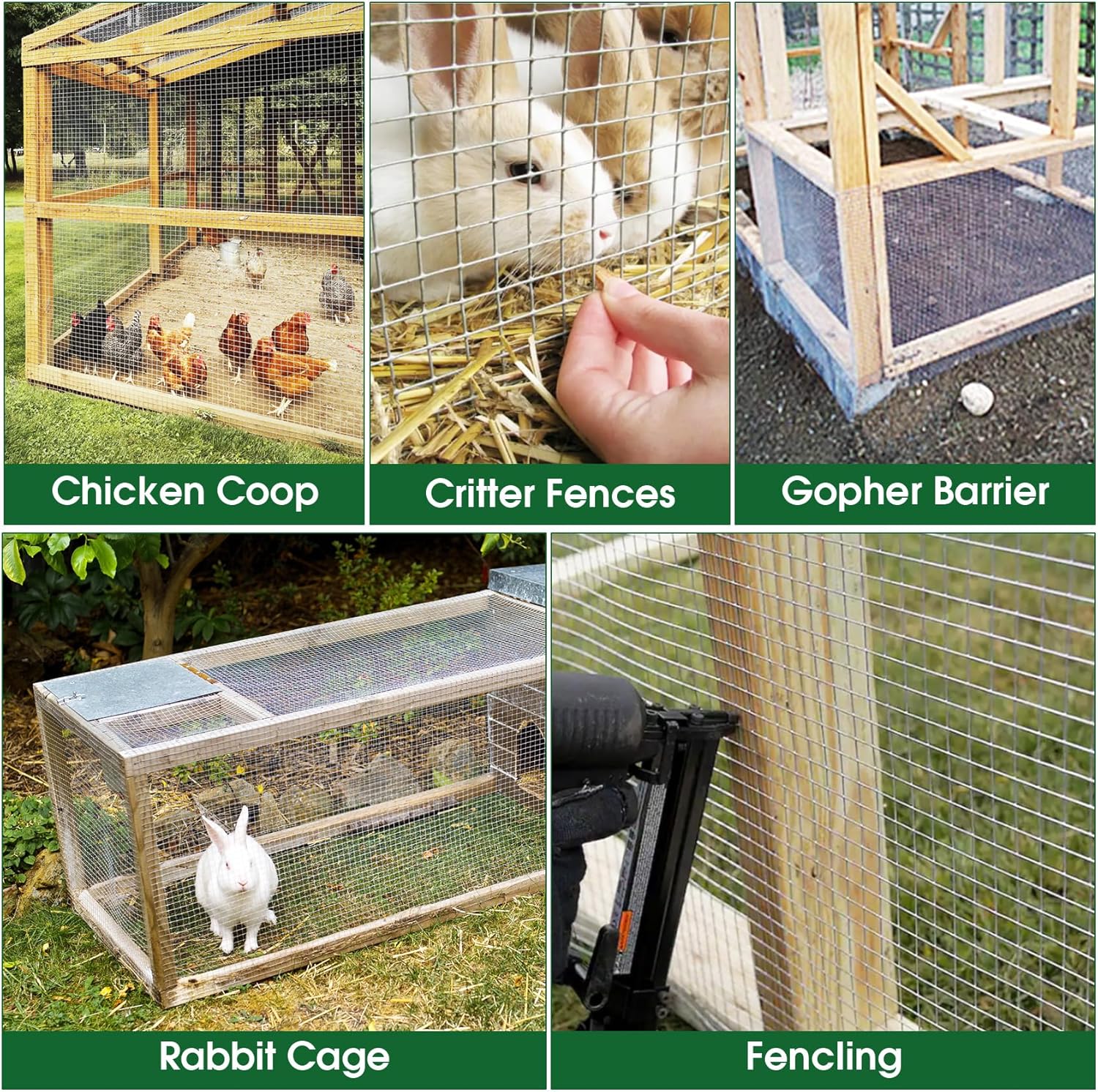 Versatile Applications: This hardware cloth roll unfolds effortlessly while maintaining sufficient sturdiness, making it suitable for a wide range of applications. Whether it's constructing chicken coops, rabbit enclosures, duck pens, window screens, garden fences, tree guards, drainage gutters, or soil sifters, this galvanized hardware cloth is up to the task