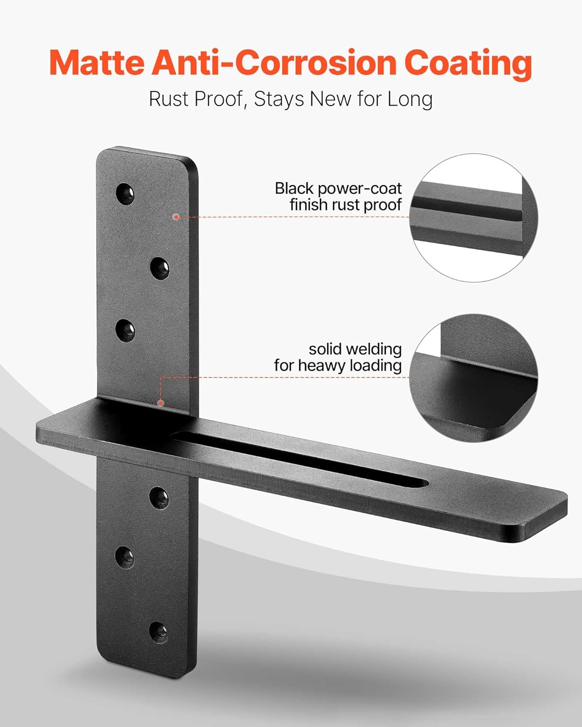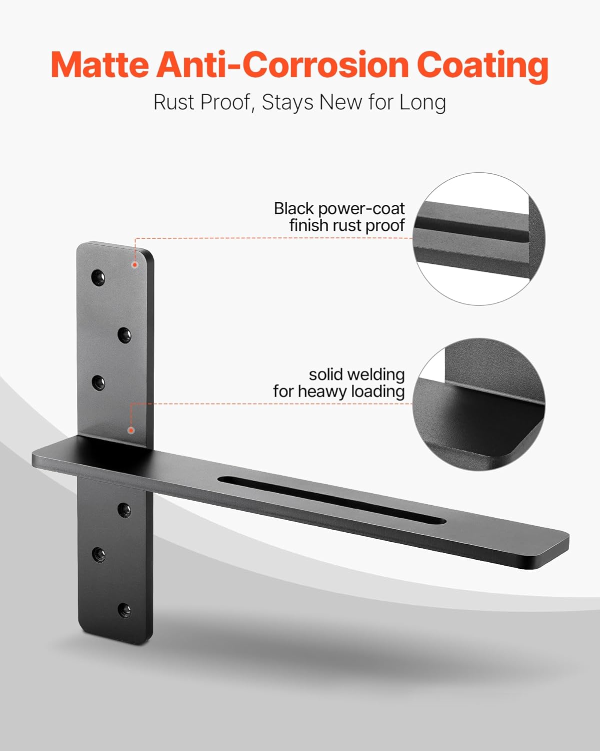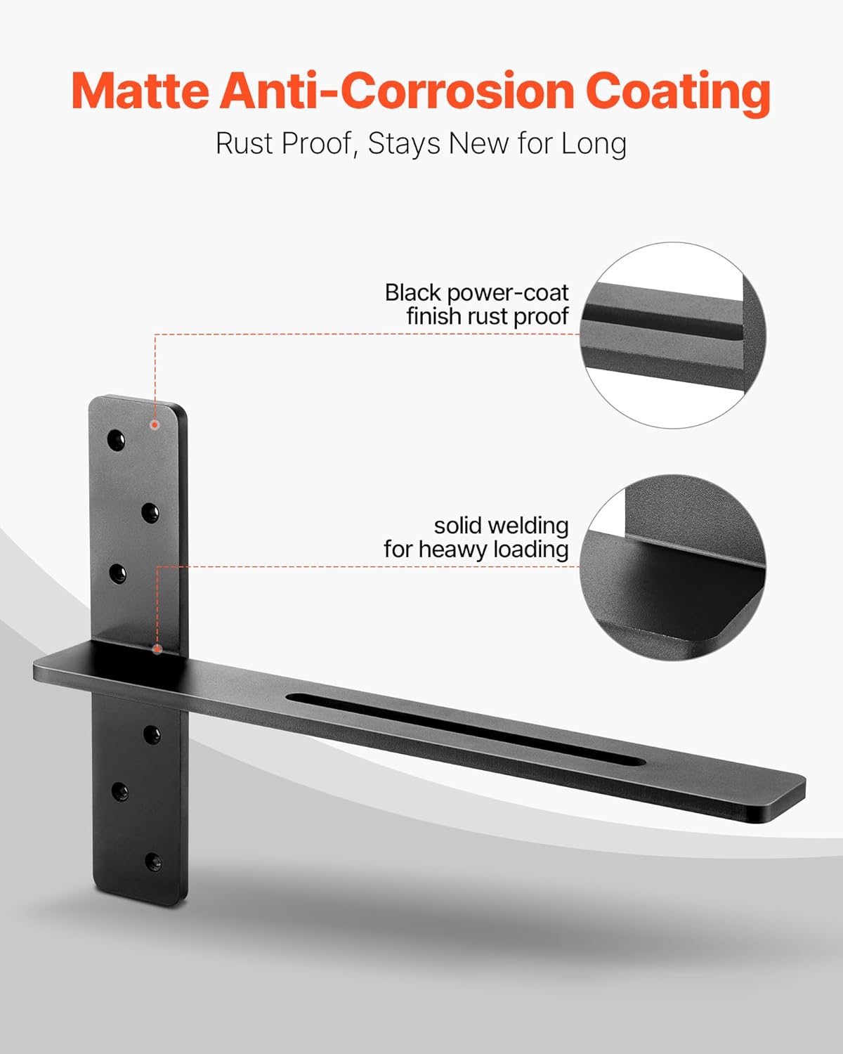 Corrosion- and Rust-Resistant: These heavy duty shelf brackets are finished with a protective anti-corrosion coating to withstand dampness and wear, maintaining a like-new appearance through long-term use