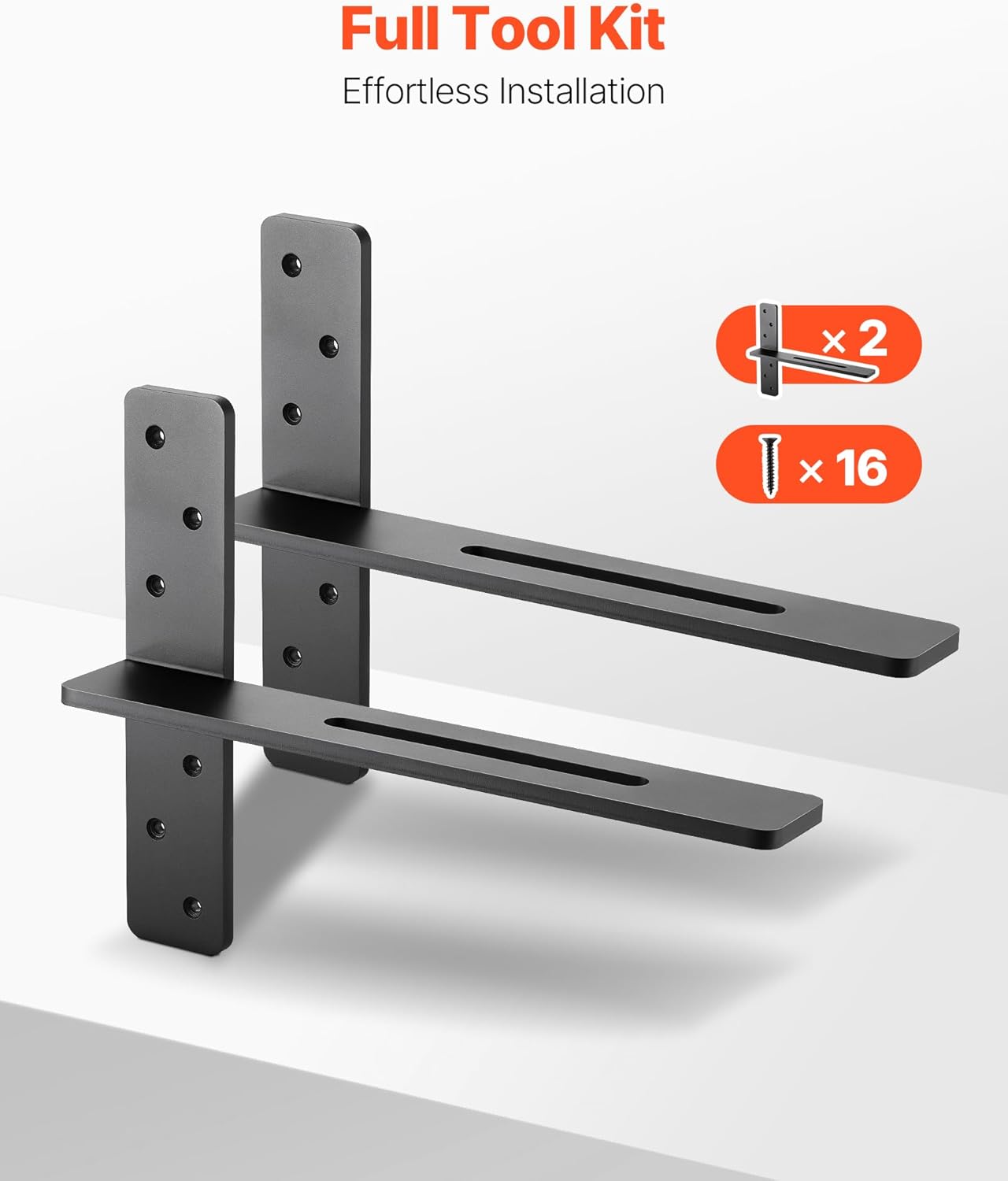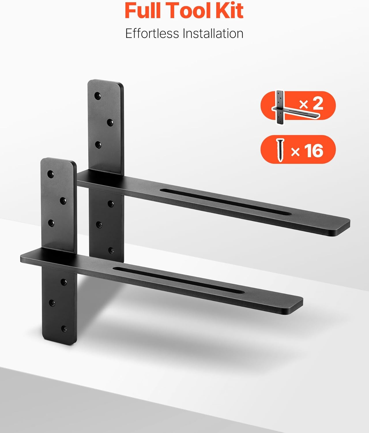 Built for heavy loads, these brackets are strong, durable, and rust-resistant. Compatible with various wall types and available in multiple sizes, they allow flexible combinations to suit your space. Includes the whole set of accessories and installs in 3 easy steps—ideal for a quick home upgrade.