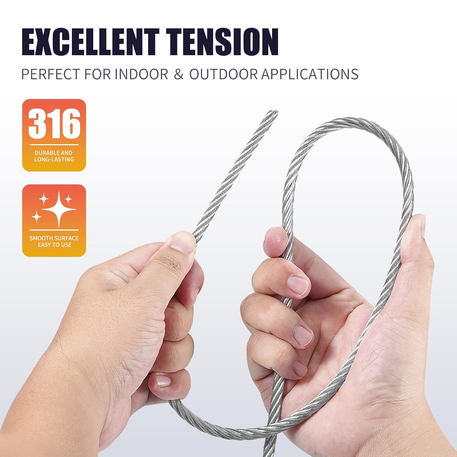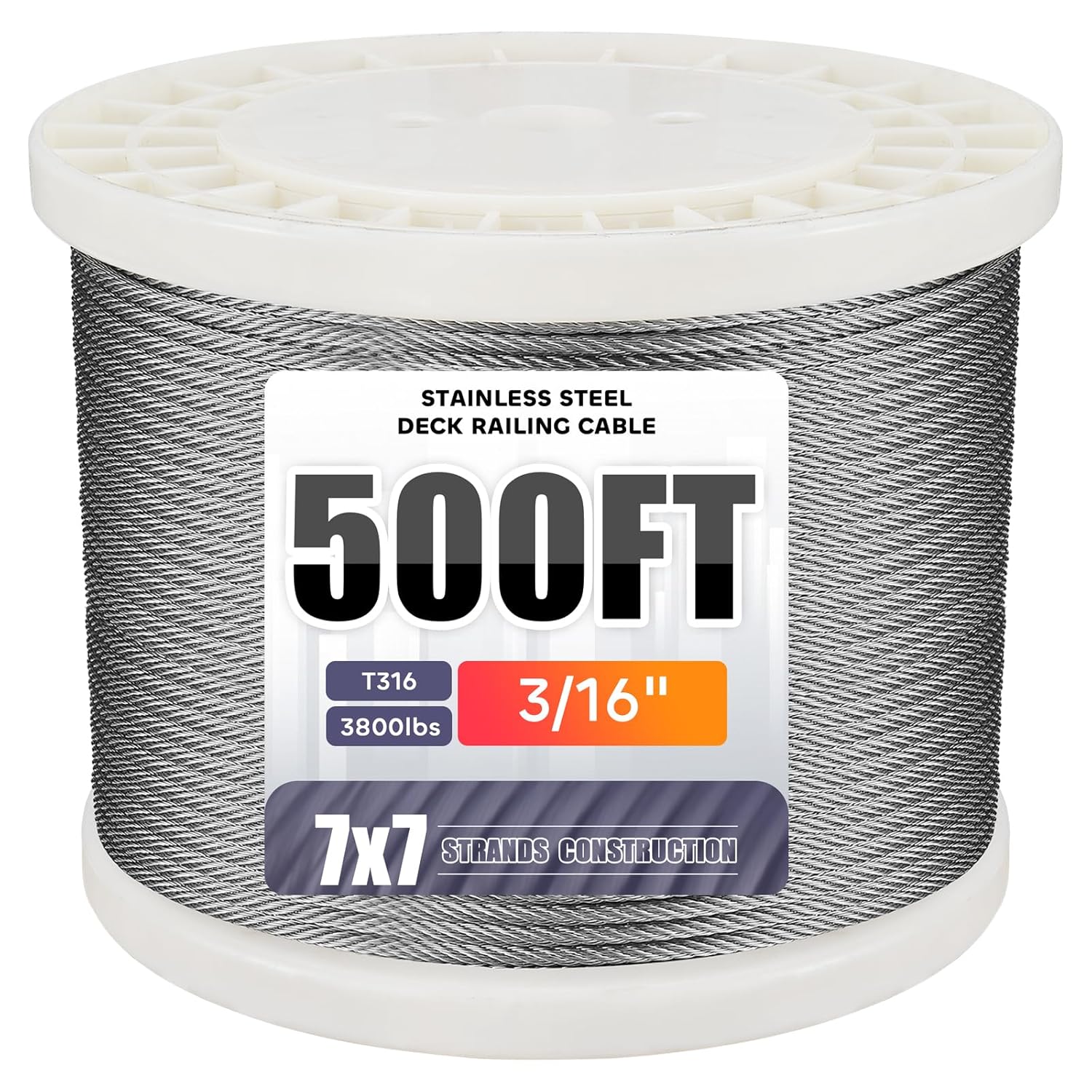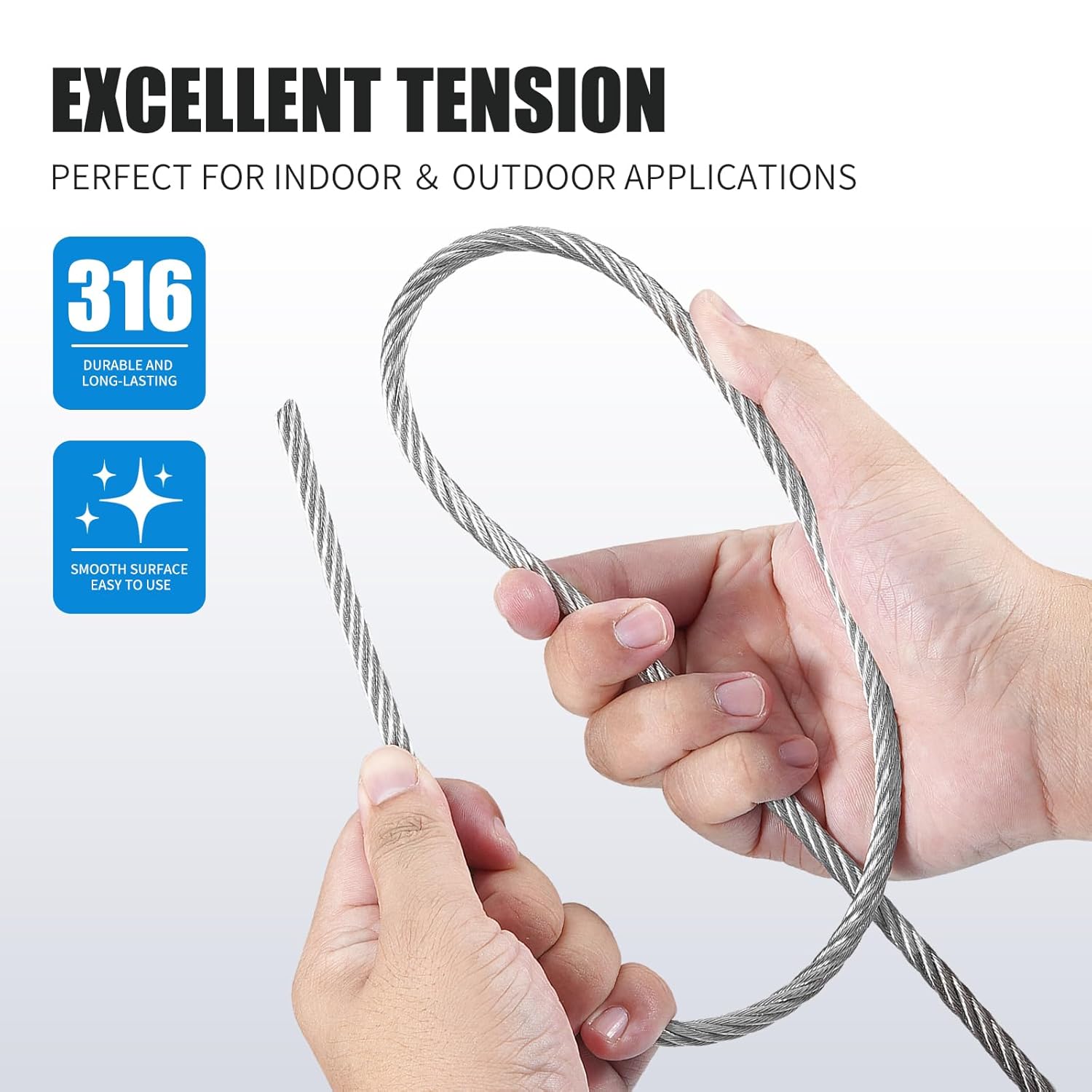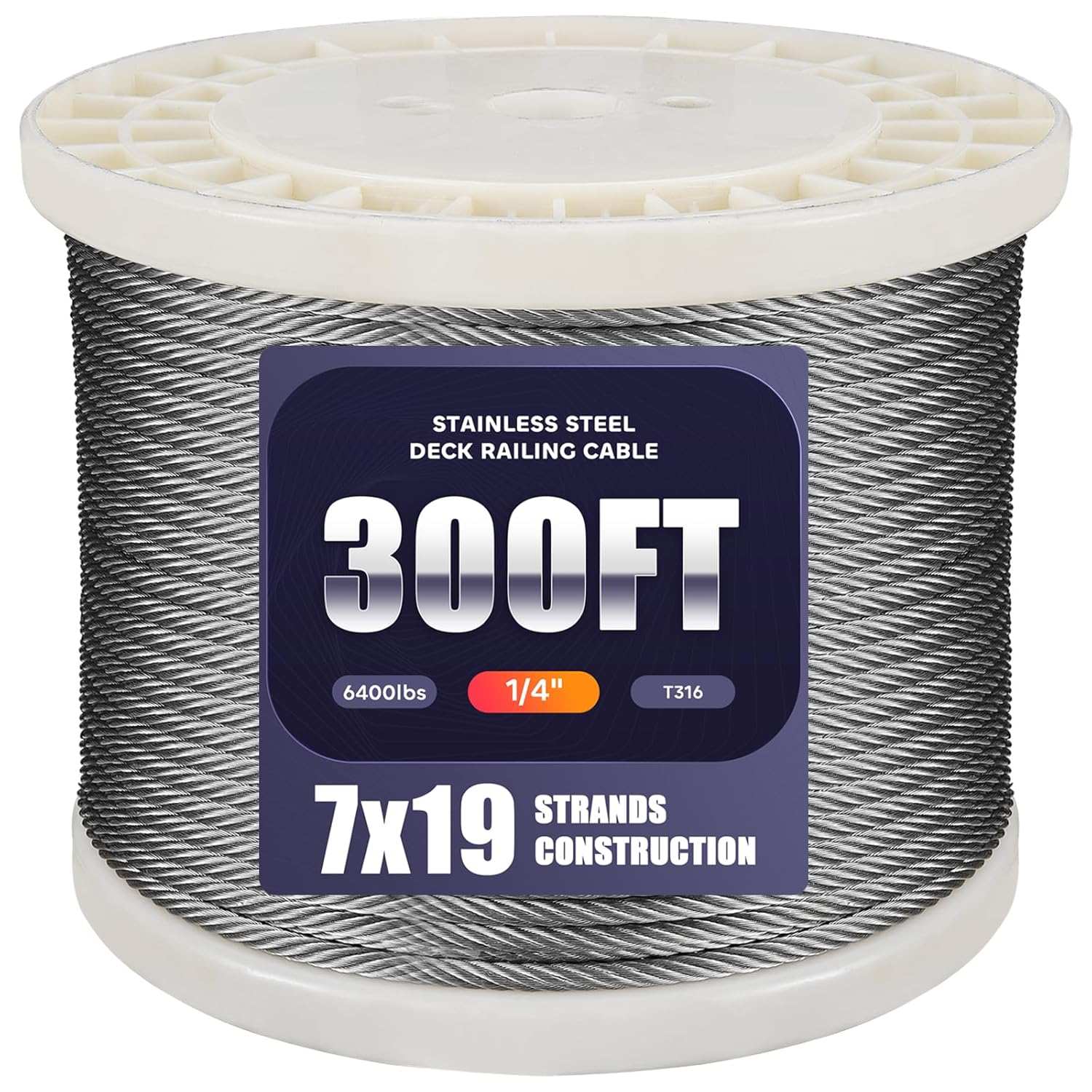 Versatile Use: Our wire rope cable is perfect for DIY deck cable railing handrail systems, strapping, traction, tensioning, and landscape use. It's also great for DIY projects and can be used for trellis, glass, and wooden railings.