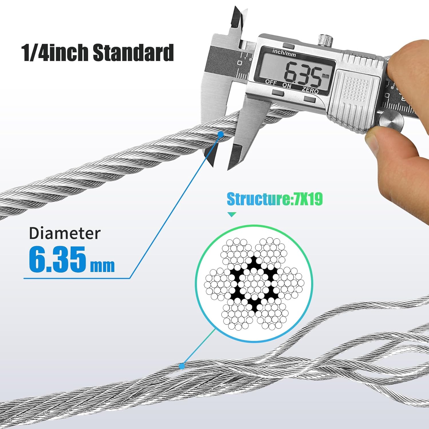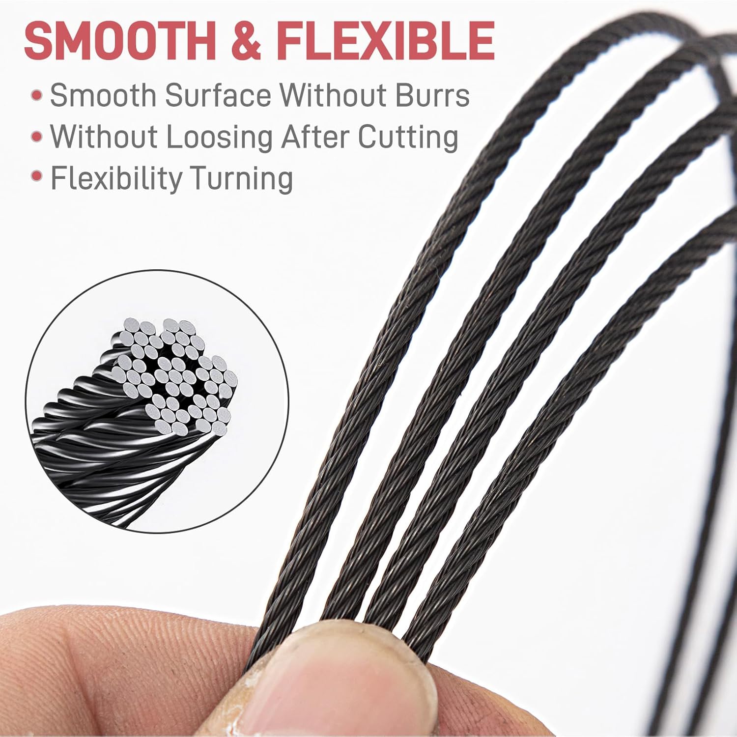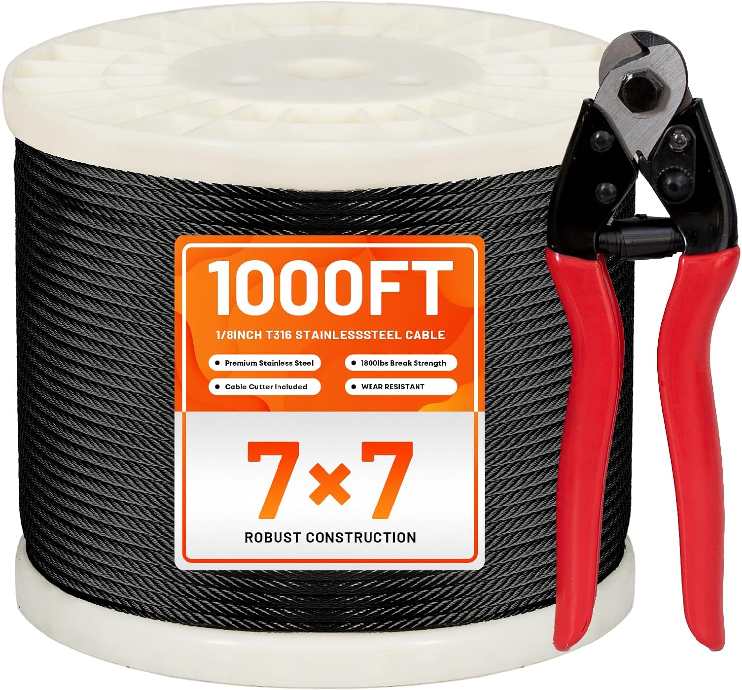 Package includes: 1 x 1000ft Stainless Steel Wire Rope, 1 x Cable Cutter. Cable Cutter cuts up to 1/8" stainless steel wire rope.