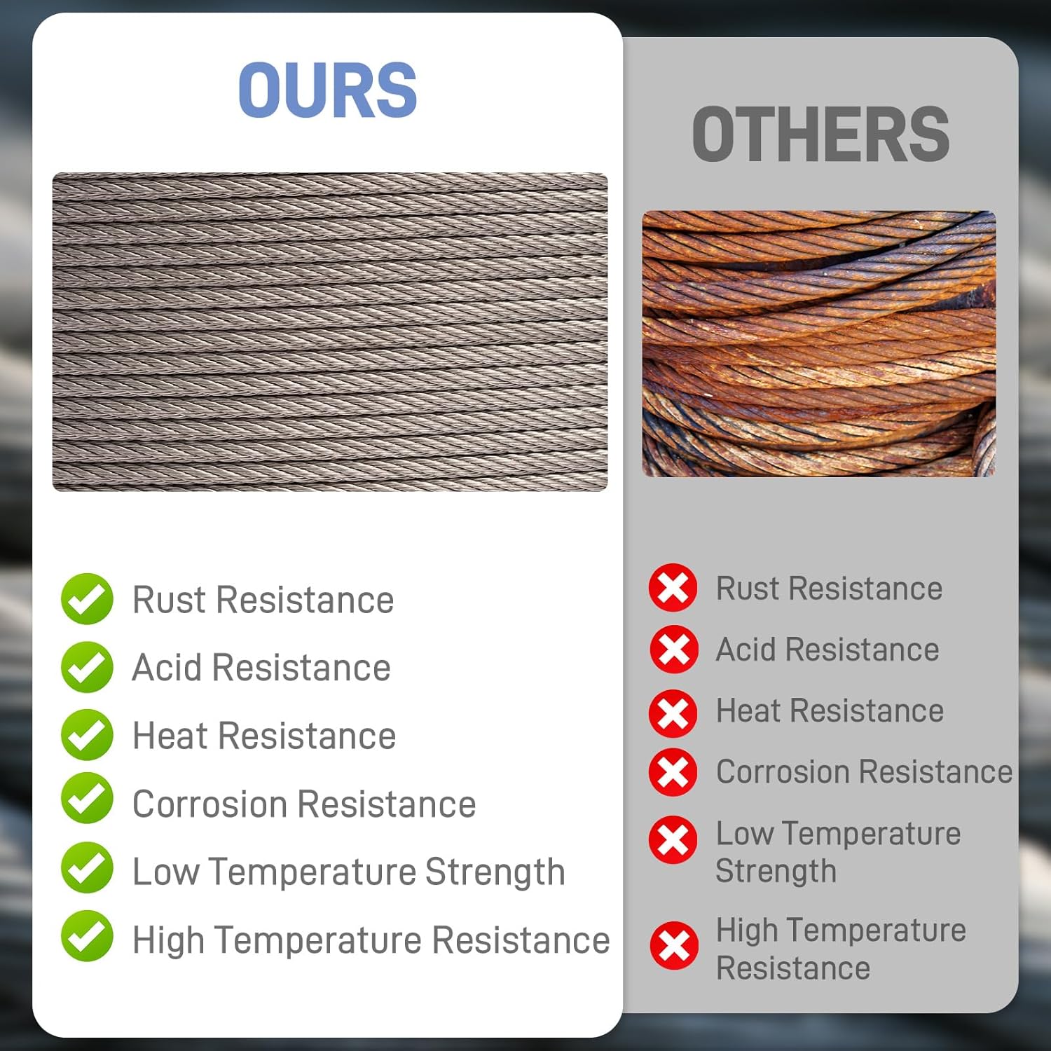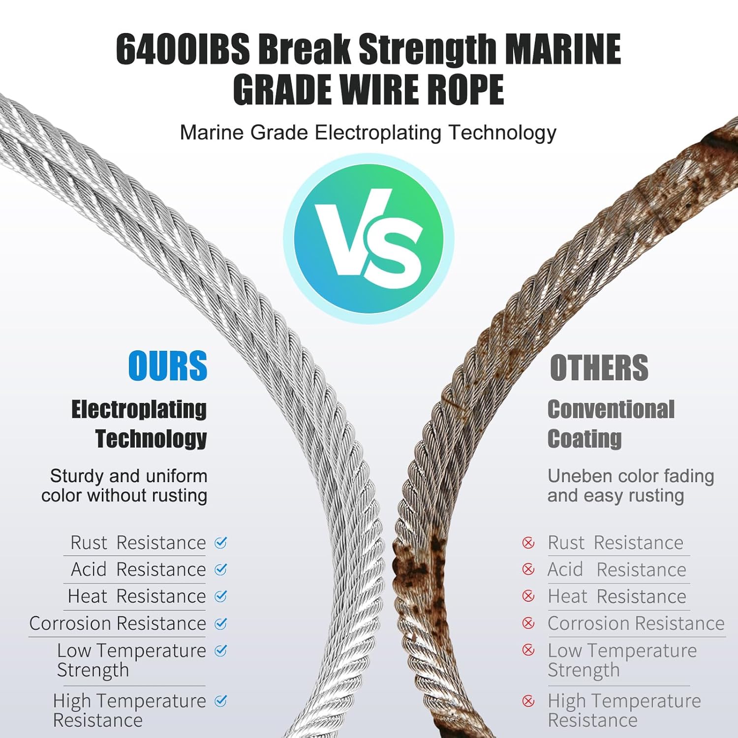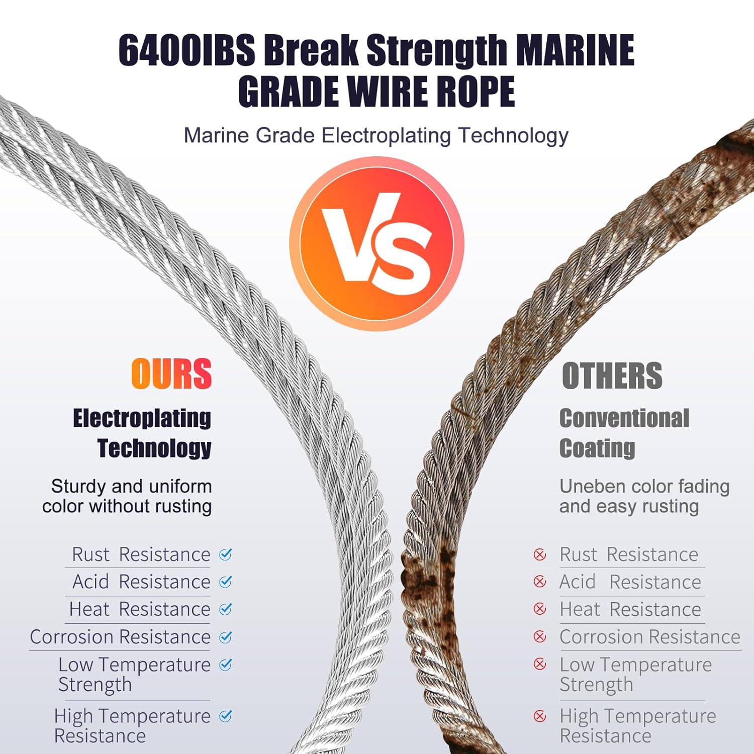 With a 1,800 lb breaking strength and 1,460 lb working strength, this wire rope is designed to provide higher tension for a longer service time.