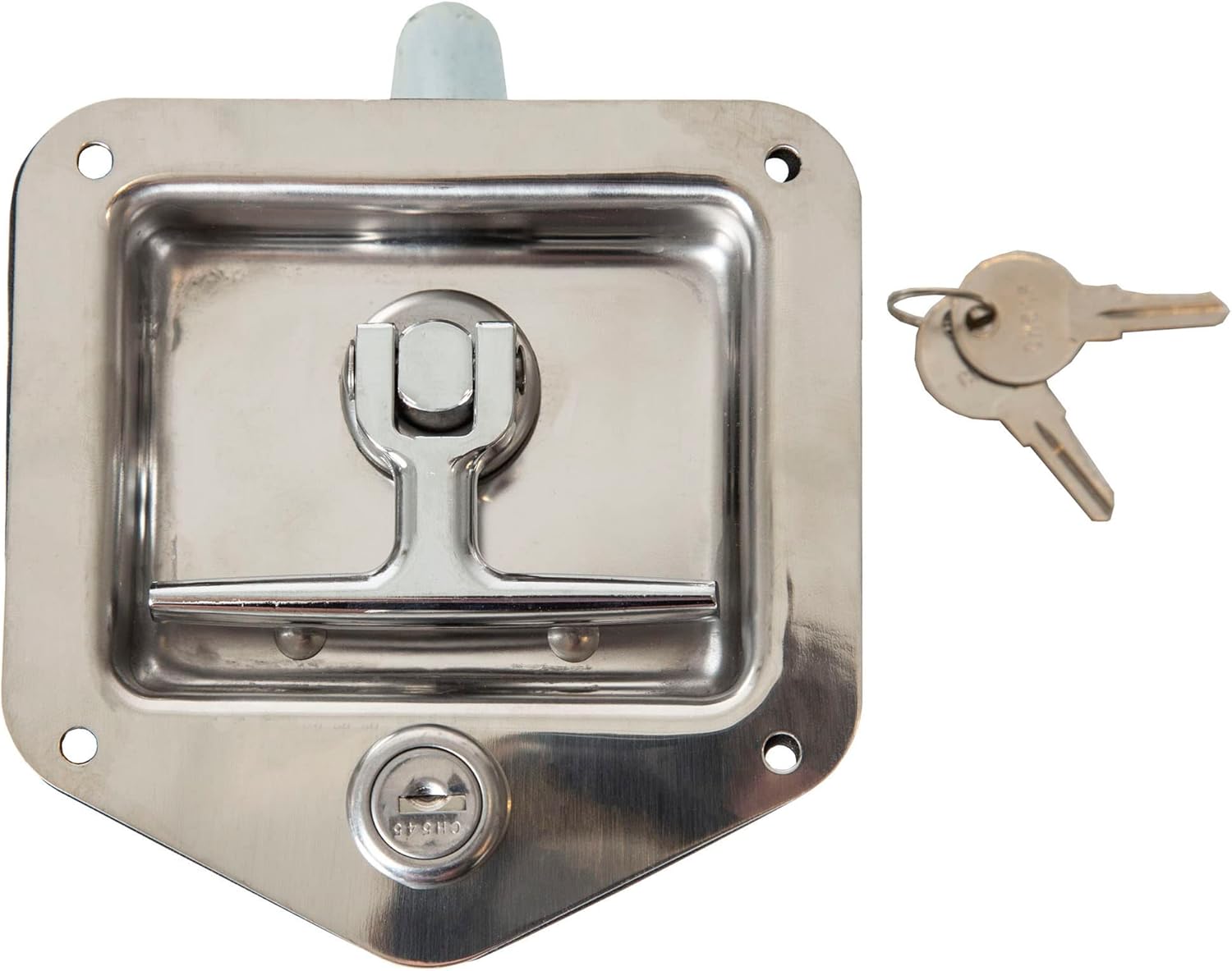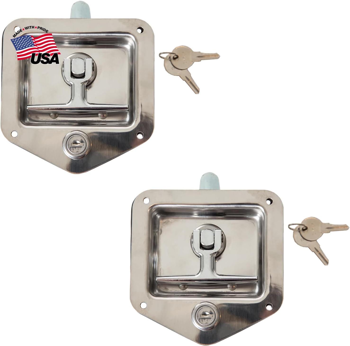 • Buyers Products L8815 T-Handle Latch, 2 Pack, Locking Single Point Latch with Gasket & 2 Keys, Polished Stainless Steel, for Truck Bed Tool Boxes, Trailer Doors, RVs, Campers, Truck Cap Latch