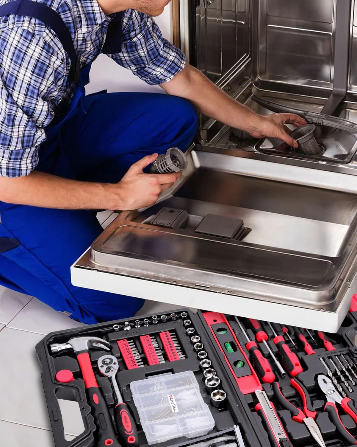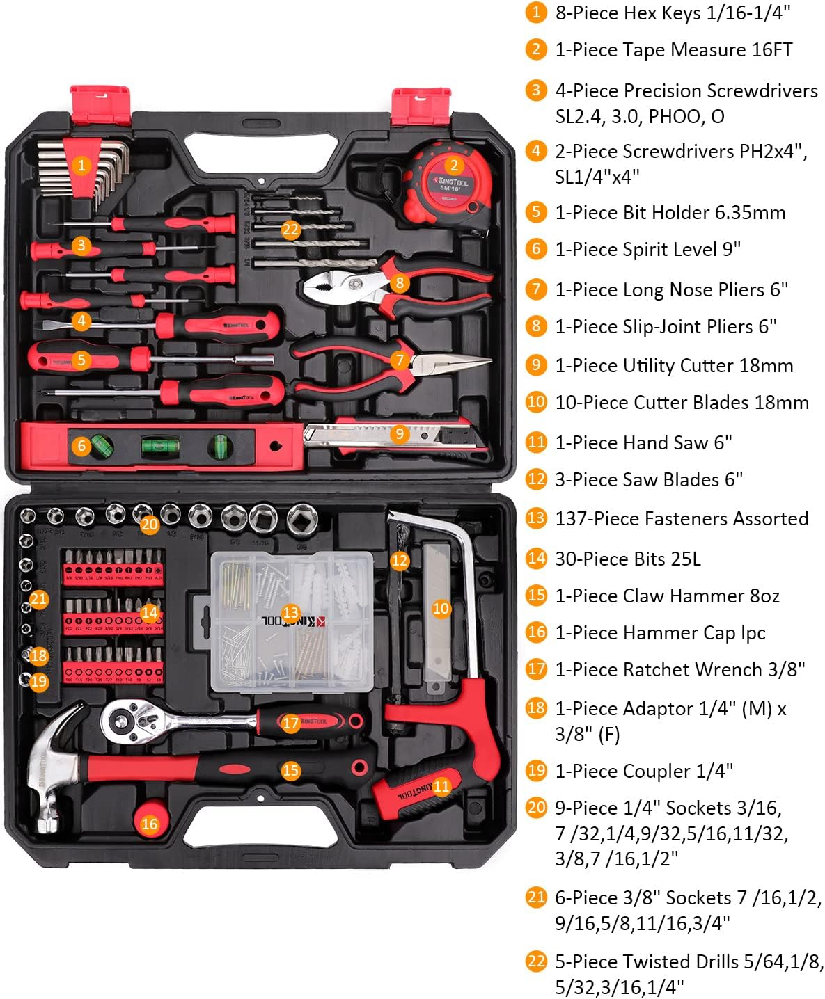 • KingTool 325 Piece Home Repair Tool Kit, General Home/Auto Repair Tool Set, Toolbox Storage Case with Drawer, General Household Tool Kit - Perfect for Homeowner, Diyer, Handyman