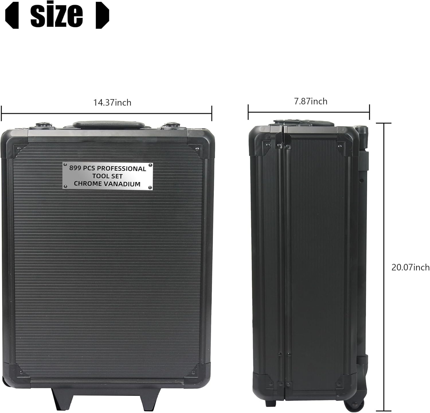 • Campfun 899PCS Tool Set, Household Tool Kit with Rolling Tool Box, Complete Tool Box Set Hand Tool Set with Tool Box, Mechanic Tool Set Rolling Tool Set for Home/Auto Repair Tool Set, Black